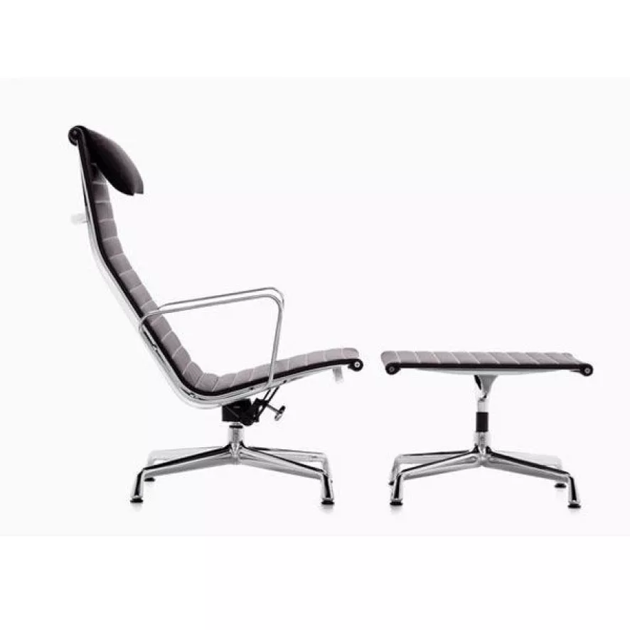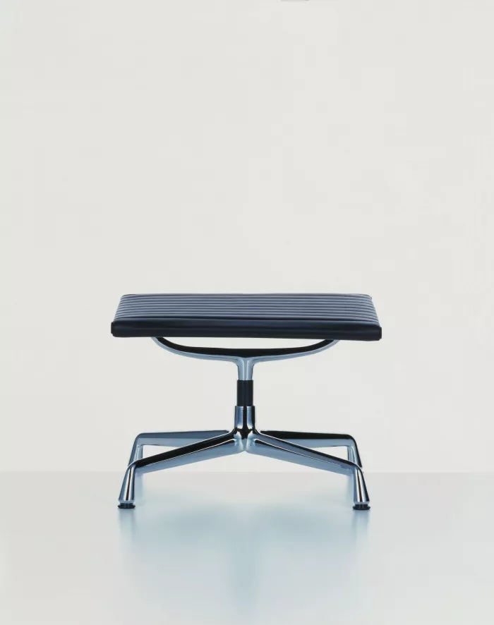 Dit is de EA 125 voetenbank van Vitra. De EA 125 voetenbank is ontworpen door Charles & Ray Eames en behoort tot de Aluminium Group van Vitra. Het gehele frame is gemaakt van, hoe kan het ook anders, aluminium. Daarin kun je kiezen tussen verchroomd of gepolijst aluminium. De voetenbank is in al dezelfde kleuren en stoffen te verkrijgen als de bijpassende loungestoel. De stof die gebruikt wordt voor bekleding van de EA 125 is Hopsak. Ook kan je ervoor kiezen de voetenbank met leder te laten bekleden.
