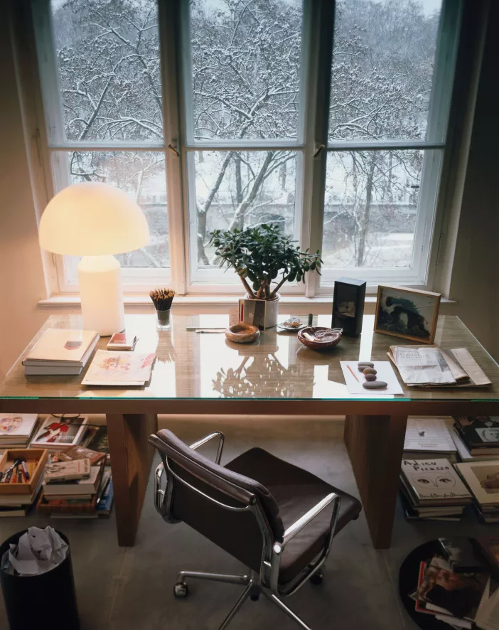 Dit is de EA 217 bureaustoel van Vitra. De EA 217 stoel is ontworpen door Charles & Ray Eames en behoort tot de Aluminium Group van Vitra. Het gehele frame van de stoel, is gemaakt van, hoe kan het ook anders, aluminium. Daarin kun je kiezen tussen verchroomd of gepolijst aluminium. De stoel beschikt over armleuningen en is verrijdbaar. De EA 217 bureaustoel beschikt over een lederen zitting en twee rugkussens van plano. De zes kleuren waarin de EA 217 beschikbaar is, zijn:
