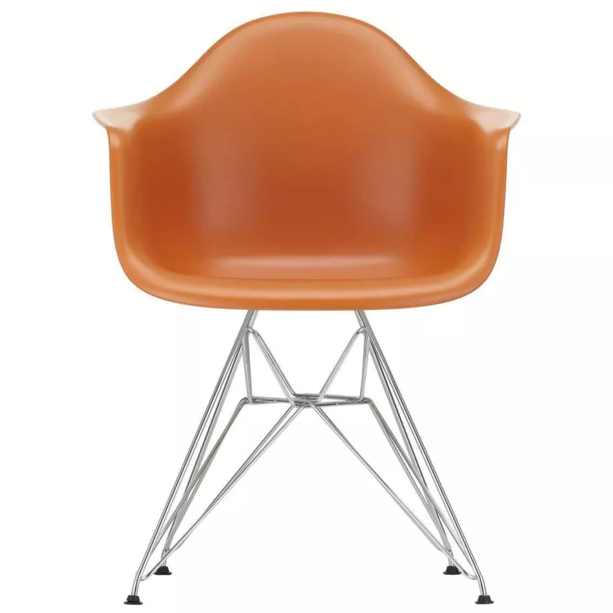De Eames DAR stoel verchroomd onderstel van Vitra is een absolute bestseller. Uiteraard is de door Ray en Charles Eames ontworpen stoel er in vele kleuren. De zitting is gemaakt van kunststof en is ook te bekleden in één van de 27 kleuren in de stofsoort Hopsak. De Eames DAR stoel heeft (als nieuwe afmetingen) een breedte van 63 centimeter, een diepte van 59 centimeter en een hoogte van 83 centimeter. De zithoogte van de stoel is 43 centimeter. In plaats van een verchroomd onderstel is er in dezelfde serie ook een DAR stoel met zwart gepoedercoat onderstel. Door de poedercoating is die variant ook geschikt als tuinstoel.