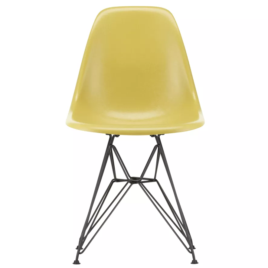Vitra Eames DSR Fiberglass Stoel Zwart Onderstel, Light Ochre