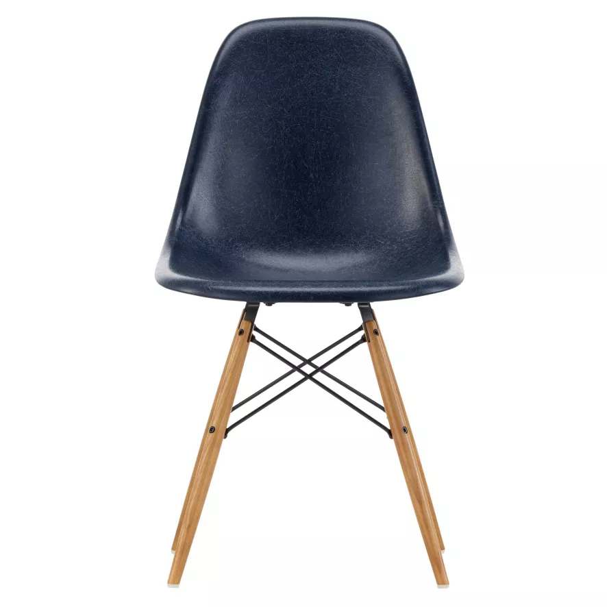 Bij de Eames DSW Fiberglass stoel wordt de glasvezel zitschaal gecombineerd met een houten onderstel. Door deze combinatie heeft de stoel een warme en ongedwongen uitstraling. De stoel heeft een breedte van 46,5 centimeter, een diepte van 55 centimeter en een hoogte van 83 centimeter. De zithoogte is 43 centimeter. De zitschaal is gemaakt van glasvezelversterkt polyester (glasvezel). Het onderstel is gemaakt van honingkleurig essen.