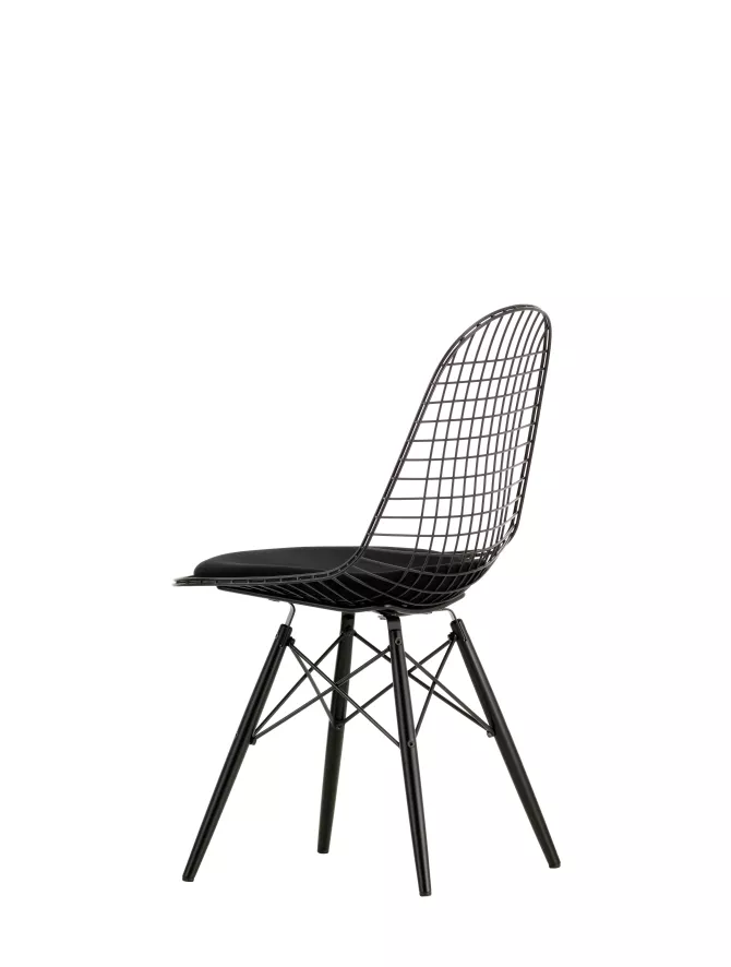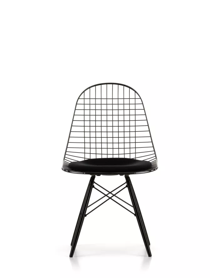 De Wire Chair DKW-5 stoel, ontworpen door Charles en Ray Eames, bestaat uit gebogen en gelast staaldraad met een zwarte poedercoat. Het onderstel is gemaakt van esdoorn. De stoel is 85 centimeter hoog, 49 centimeter breed, 51 centimeter diep en de zithoogte is 43 centimeter. Deze variant heeft een zitkussen dat geleverd kan worden in verschillende stof- en leersoorten.