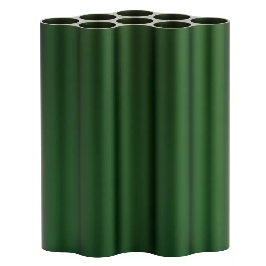 De Nuage vaas medium van Vitra is gemaakt van geadoniseerd aluminium en heeft rubberen stoppen. Je kunt voor de wolkvormige vaas kiezen uit de kleuren Ivy, Light Silver, Pastel Blue en Steel Blue. De vaas maat medium heeft een lengte van 19,5 centimeter, een breedte van 11 centimeter en een hoogte van 24 centimeter. De vaas is ook beschikbaar in de maten small en large. Onderling kun je de verschillende maten en kleuren goed met elkaar combineren.