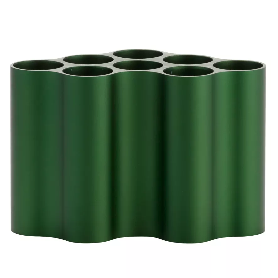 De Nuage vaas small van Vitra is gemaakt van geadoniseerd aluminium en heeft rubberen stoppen. Je kunt voor de wolkvormige vaas kiezen uit de kleuren Ivy, Light Silver, Pastel Blue en Steel Blue. De vaas maat small heeft een breedte van 19,5 centimeter, een diepte van 11 centimeter en een hoogte van 13 centimeter. De vaas is ook beschikbaar in de maten medium en large. Onderling kun je de verschillende maten en kleuren goed met elkaar combineren.