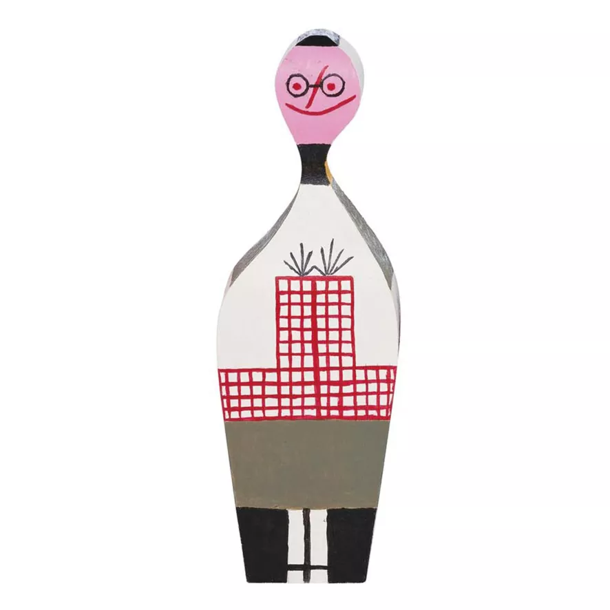 Het Wooden Dolls No. 8 speelgoed is handbeschilderd en gemaakt van massief sparrenhout. Omdat het om handwerk gaat, is elk exemplaar uniek. Deze pop komt in een hoogwaardige houten geschenkverpakking bedrukt met het Vitra logo, inclusief brochure. Hij heeft een breedte van 7 centimeter, een diepte van 4 centimeter en een hoogte van 21 centimeter.